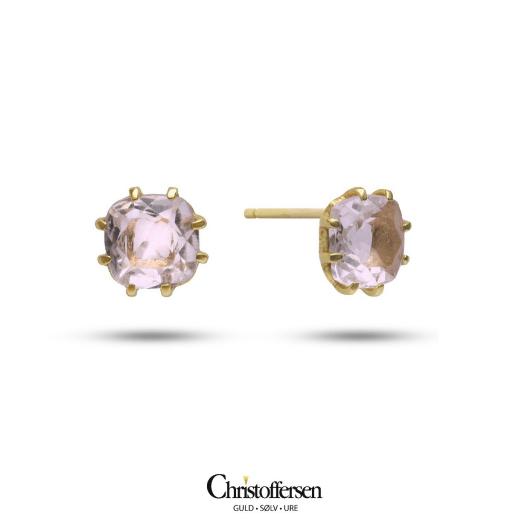 Carré sølv forgyldt øreringe med rosa kvarts. Rosa kvartsen er cushion sleben og sidder i en flot fatning med 8 grabber. Serien fra Carré hedder Gem Candy og er god til alle festlige lejligheder.