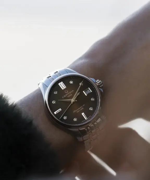 Dette skønne ur fra Certina er meget feminin med små diamanter på urskiven og en lækker varm brun farve. Uret ustråler luksus og er et automatik ur med en gangreserve på op til 80timer. Forkæl dig selv en du har kær med en luksus model fra Certina.