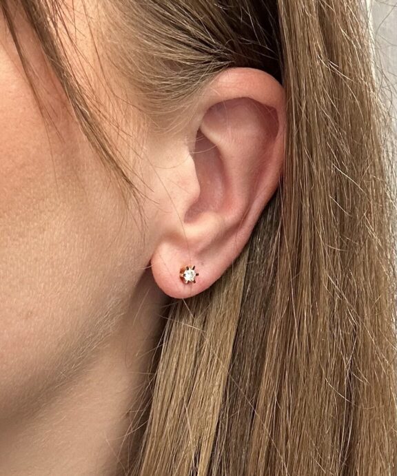 I hver ørestik sidder en 0,15 carat brillant i kvaliteten w/si.