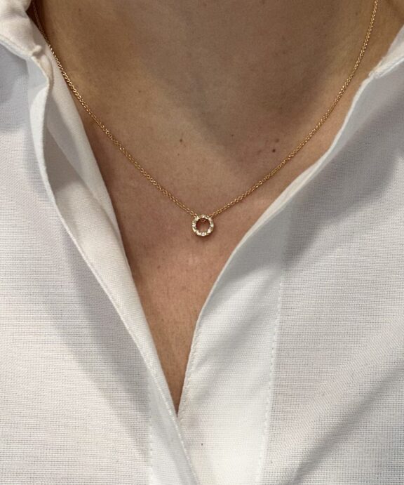CHRISTOFFERSEN JEWELLERY HALSKÆDE 14 KARAT GULD CIRKEL MED 0,06 CARAT BRILLANTER – 2000121