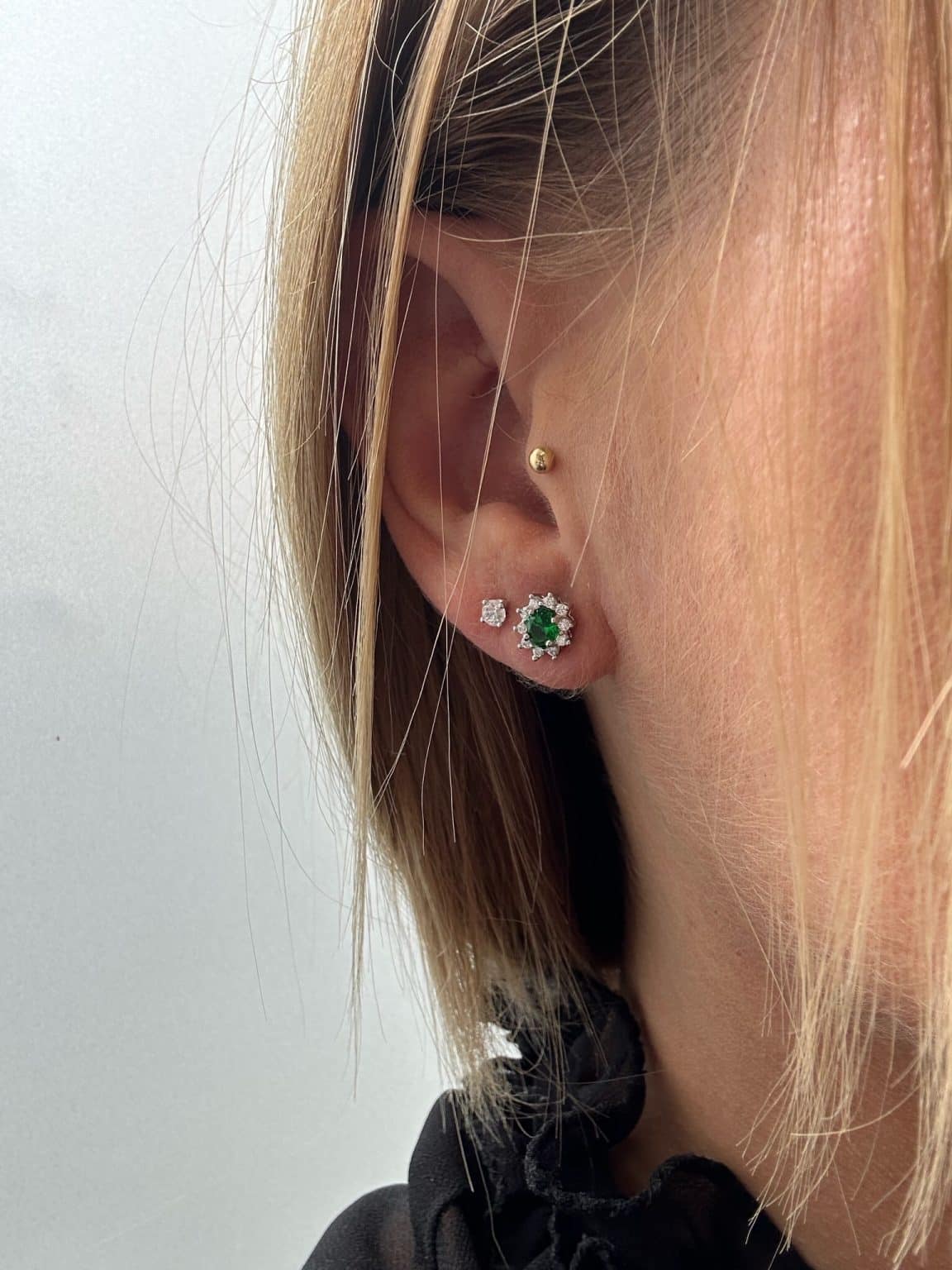 Ørestikker med masser af glimmer og en klar grøn farve der lyser flot op på øret. Disse sterling sølv øreringe er super flotte og en rigtig klassiker til kvinden der har alt. Øreringen kan bruges til både hverdag og fest.