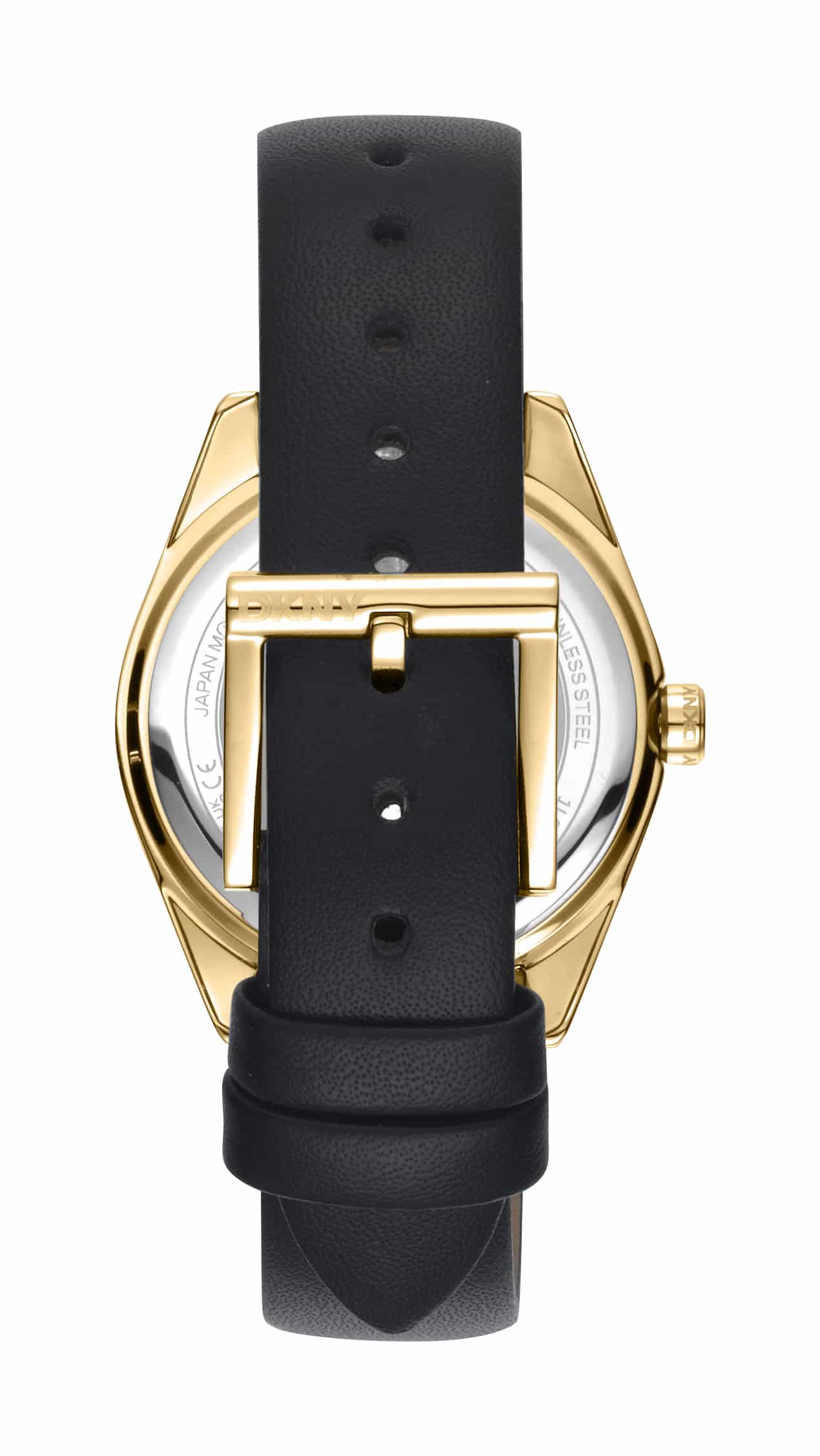 DKNY CHAMBERS MIDI UR DAME GULD FARVET MED SORT LÆDERREM – DK1L016L0025