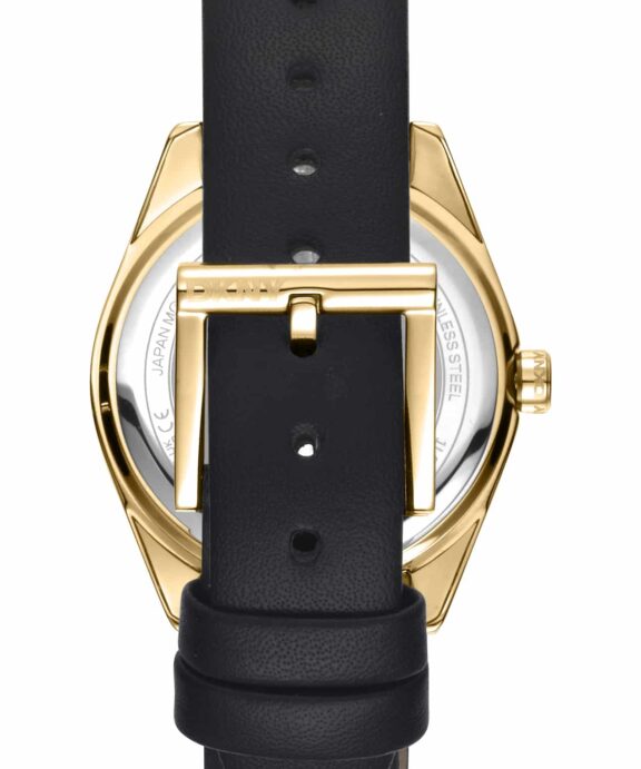 DKNY CHAMBERS MIDI UR DAME GULD FARVET MED SORT LÆDERREM – DK1L016L0025