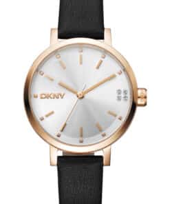 DKNY SOHO GLITZ UR DAME ROSA KASSE MED SORT LÆDERREM – DK1L038L0035