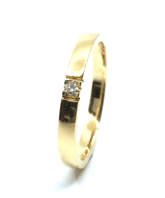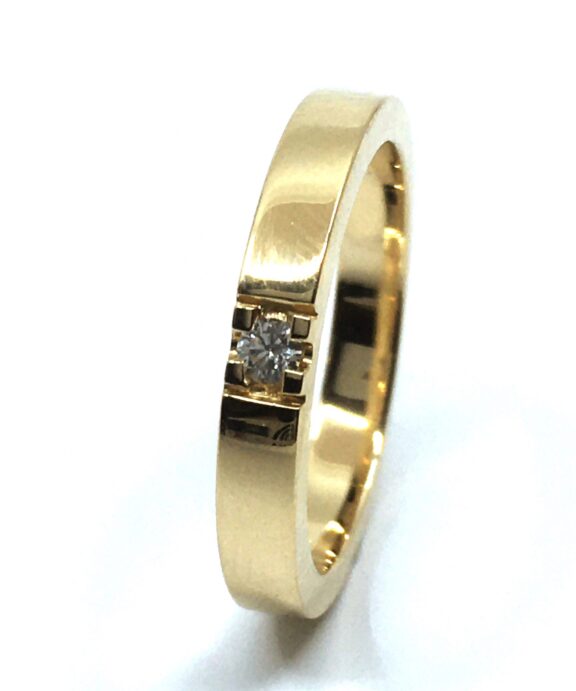 14 karat guld ring med brillant på 0,05 carat i kvaliteten wesselton/pi. Ringen er tilknyttet en ombytningsret, så den inden for to år kan ombyttes til nummeret større.