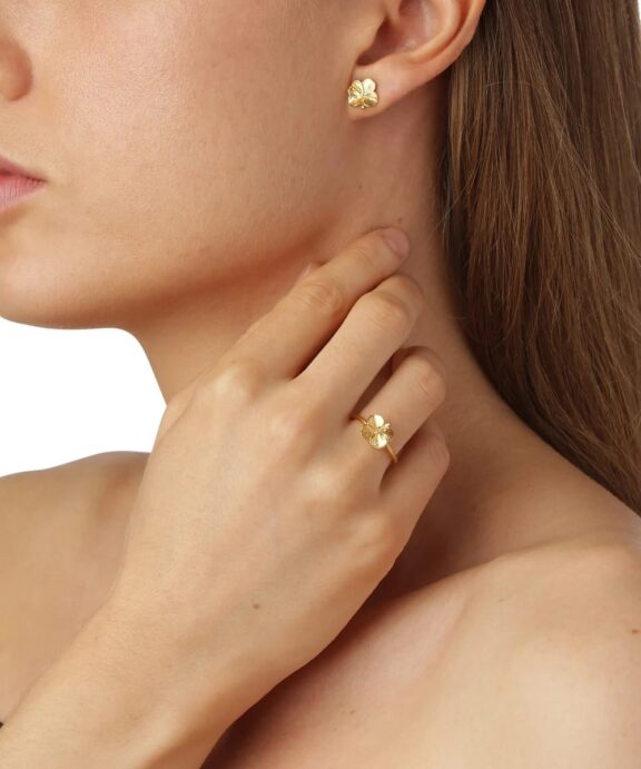 FLORA DANICA ARMBÅND RØDT SILKESNOR FORGYLDT FIRKLØVER – FLC-SILK-RED-18-G