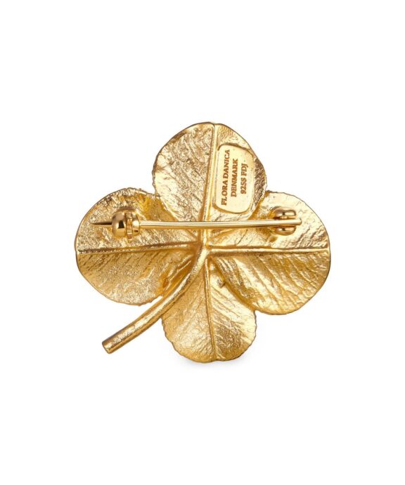 FLORA DANICA FIRKLØVER BROCHE PAVÉ FORGYLDT SØLV – FLC-BRO-G-PAVE