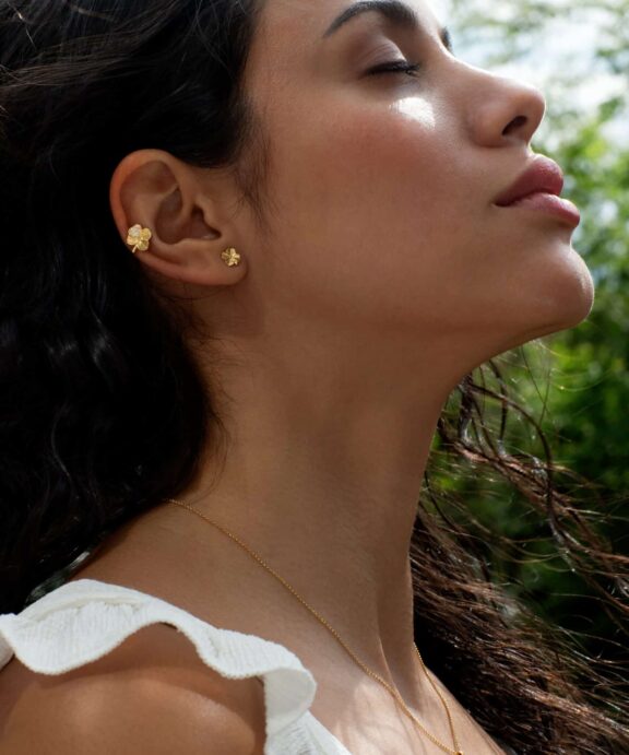 FLORA DANICA FIRKLØVER EARCUFF PAVÉ FORGYLDT SØLV – FLC-EACU-G-PAVE
