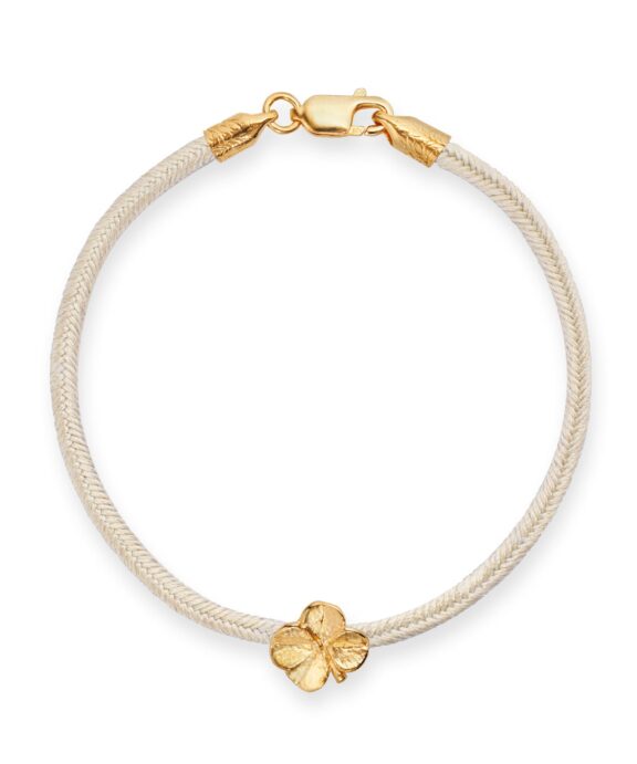 FLORA DANICA SILKE ARMBÅND CHAMPAGNE MED FIRKLØVER 16,5 CM – FLC-SILK-CHAMPAGNE-16-G