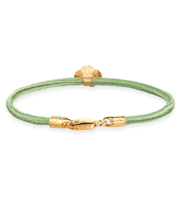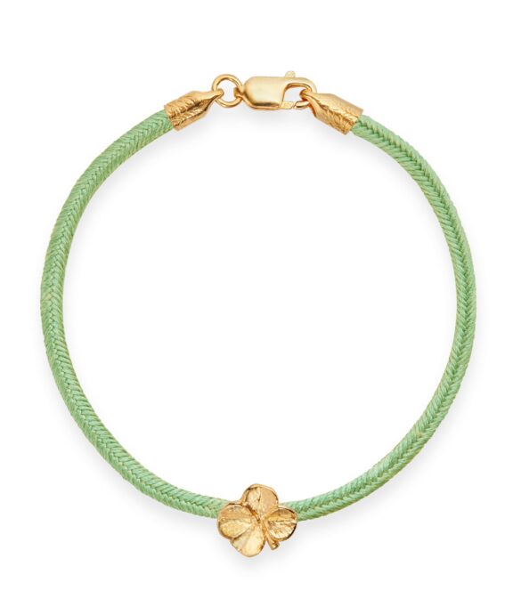 FLORA DANICA SILKE ARMBÅND LYSEGRØN MED FIRKLØVER 16,5 CM – FLC-SILK-LIGHTGREEN-16-G