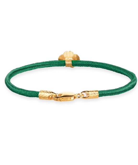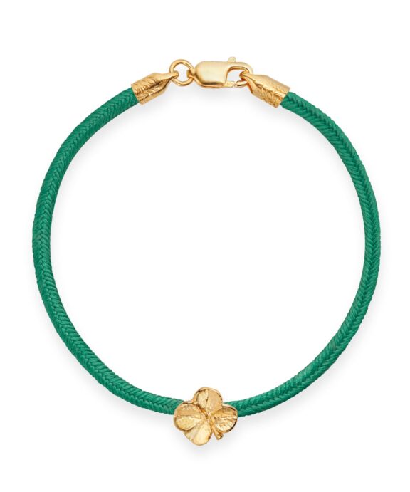 FLORA DANICA SILKE ARMBÅND MØRKEGRØN MED FIRKLØVER 18 CM – FLC-SILK-DARKGREEN-18-G