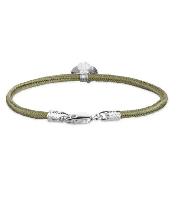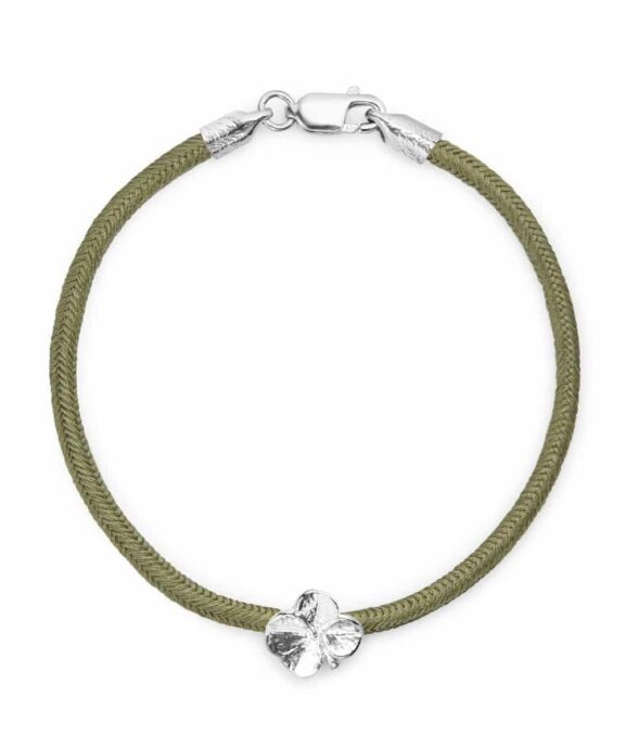 FLORA DANICA SILKE ARMBÅND OLIVEN FIRKLØVER FORGYLDT SØLV – FLC-SILK-OLIVE-16-S