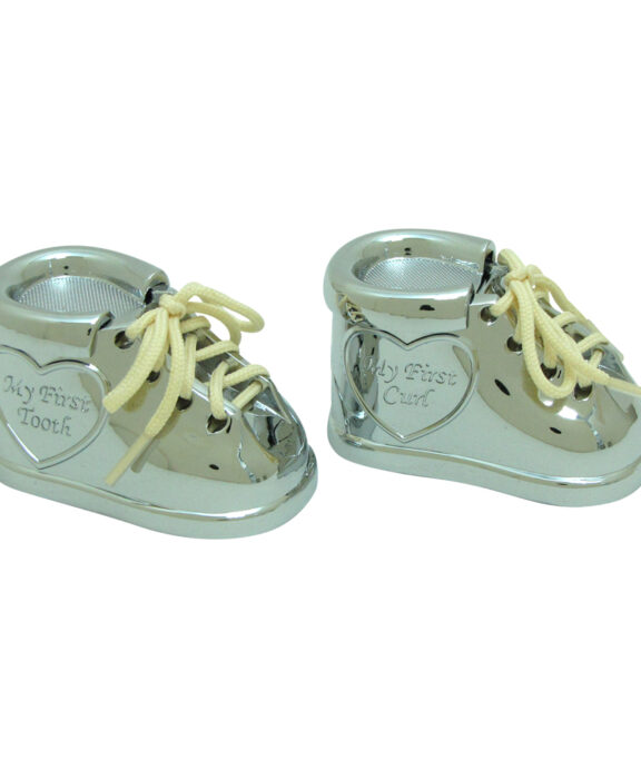 Min første tand og hårlok sæt består en to sko der er fremstillet i krom med to farver snørebånd til lyseblå i cremefarvet.