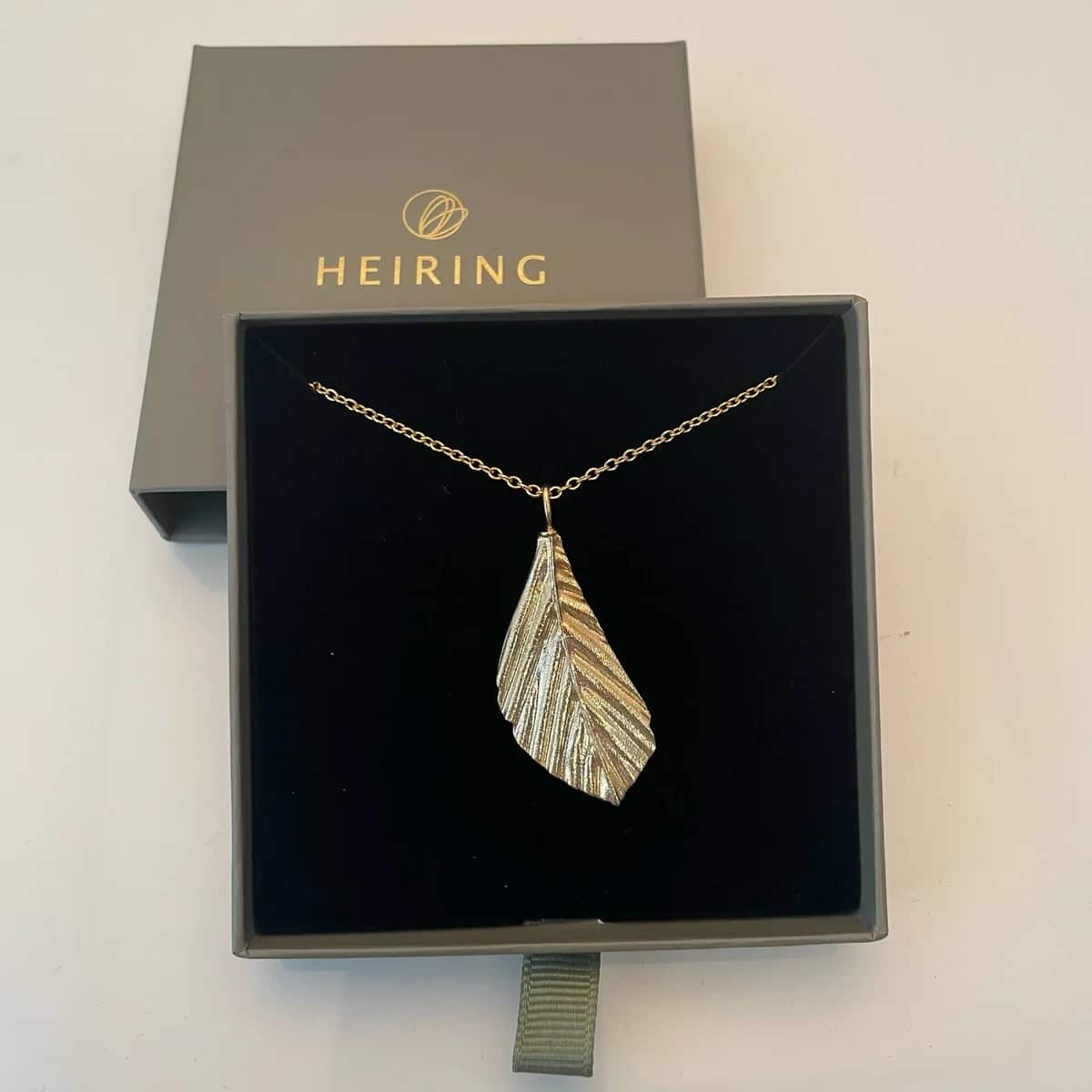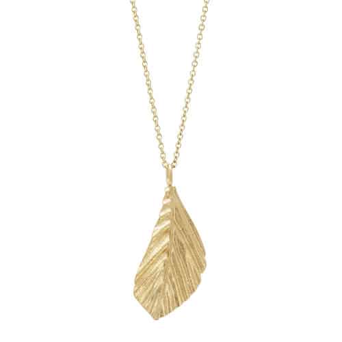 Et stilfuldt smykke inspireret af naturens organiske former. Dette mellemstore Faggio vedhæng fra HEIRING er fremstillet i sterlingsølv og belagt med en varm, gylden forgyldning, der giver et eksklusivt og tidløst udtryk.