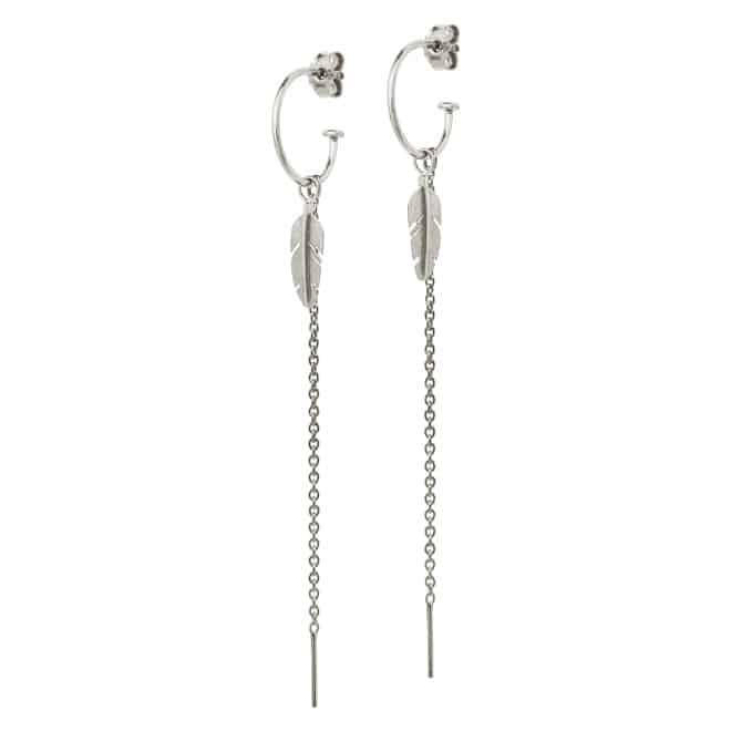 Elegant, tidløs og fuld af bevægelse af disse Heiring fjer creol øreringe med kæde i ægte rhodineret sølv.