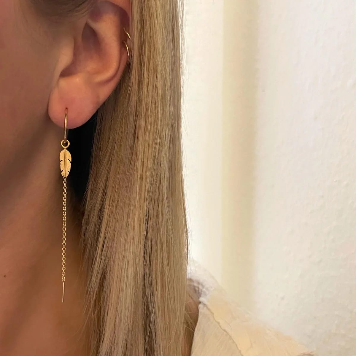 Den delikate fjerdetalje symboliserer frihed og lethed. Øreringene bevæger sig smukt, når du gør, og giver et sofistikeret udtryk.