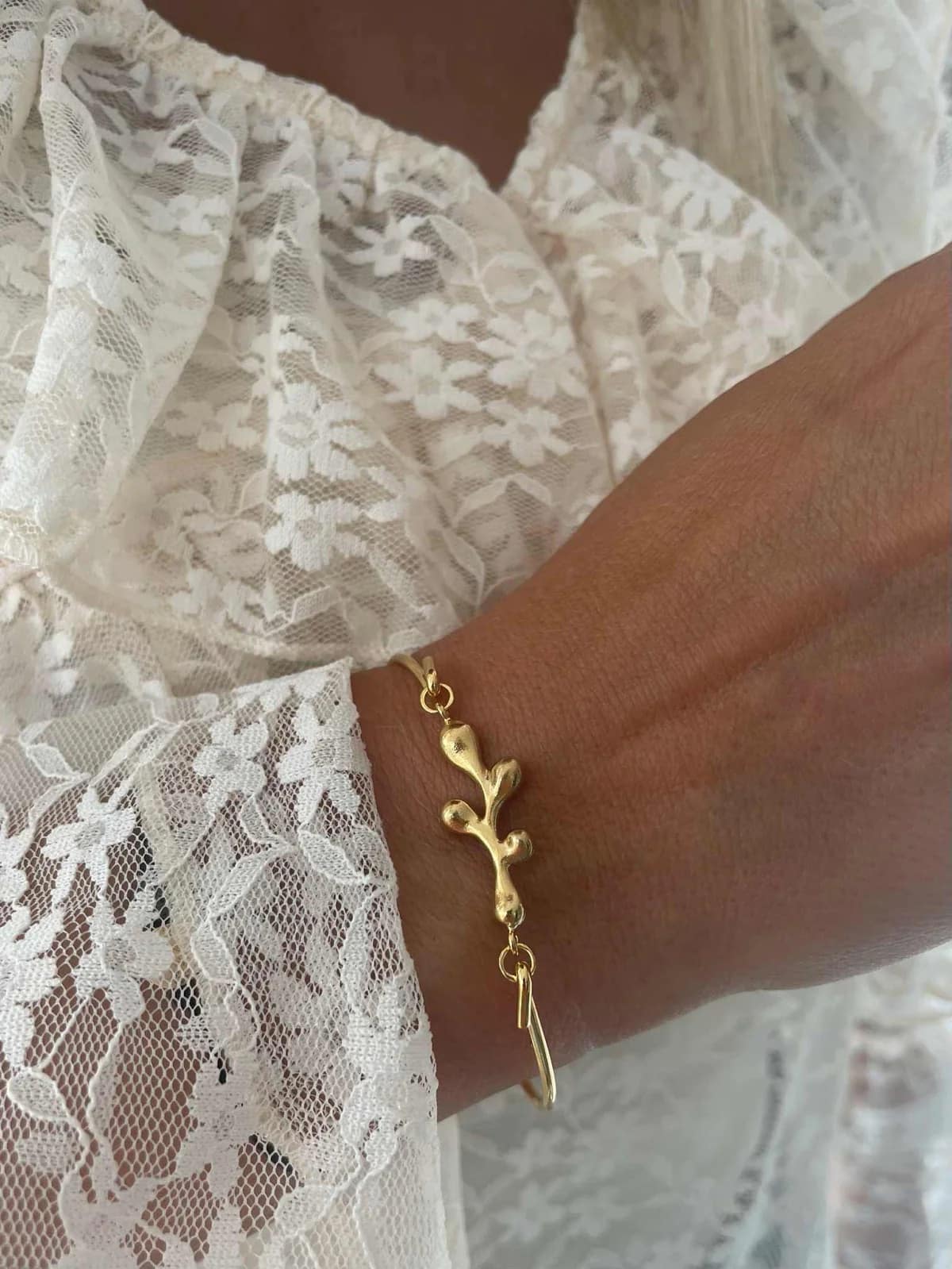 Tilføj et unikt og feminint touch til din smykkesamling med Heirings Florea top. Udført i smukt forgyldt sterling sølv, kombinerer denne top elegant håndværk med et organisk og blomsterinspireret design. Florea toppen er designet til at kunne sættes på en multi-armring, så du kan skabe et personligt og unikt udtryk, der passer til din stil og personlighed.