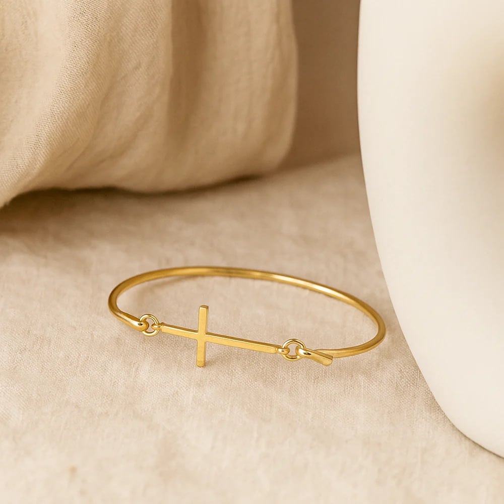 Tilføj et strejf af luksus og symbolik til din smykkesamling med denne smukke Heiring kors top i forgyldt sølv. Denne elegante top er designet specielt til multi armringe og giver mulighed for at skabe et personligt og stilfuldt look.