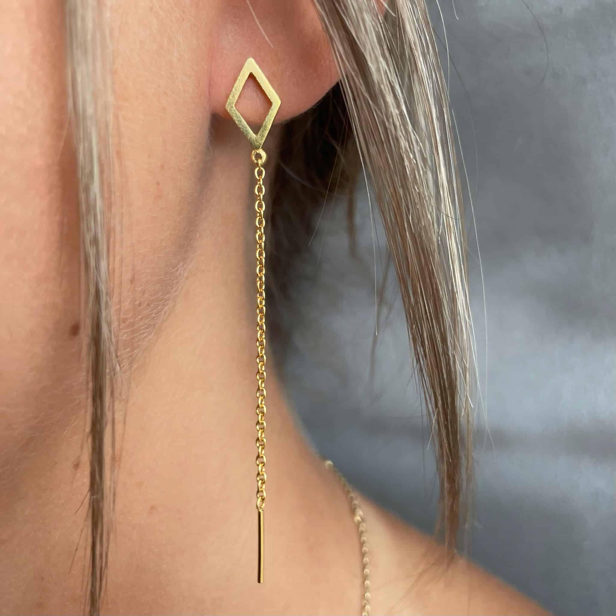 HEIRING RHOMBUS ØRERINGE MED KÆDE I FORGYLDT SØLV – 52-8-12FG