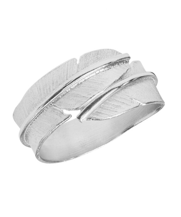 Fjer ringen er fremstillet i 925 sterling sølv med en rustik overflade.