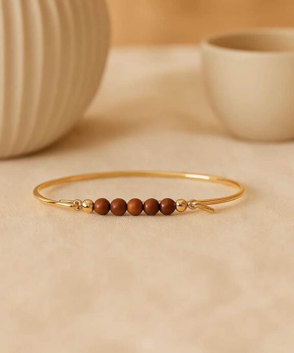 Rød jasper er kendt som en sten, der symboliserer jordforbindelse og energi. Kombinationen af den varme sten og det gyldne skær fra sølvet skaber et harmonisk og eksklusivt look, der gør smykket både tidløst og personligt.