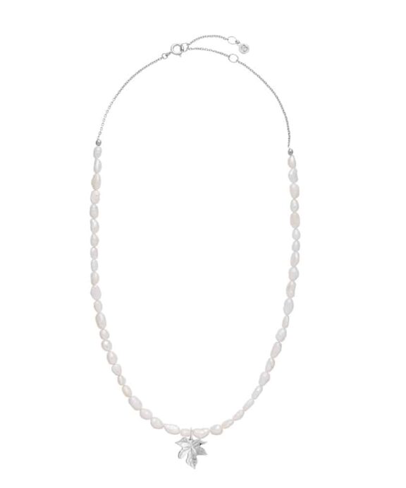 IZABEL CAMILLE CALEY SØLV HALSKÆDE MED PERLER OG BLAD – A2058SWS