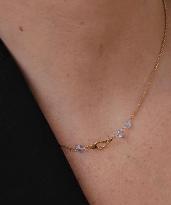 Halskæden er lavet i 100% genanvendelse 925 sterling sølv, som er belagt med en 18 karat forgyldning.