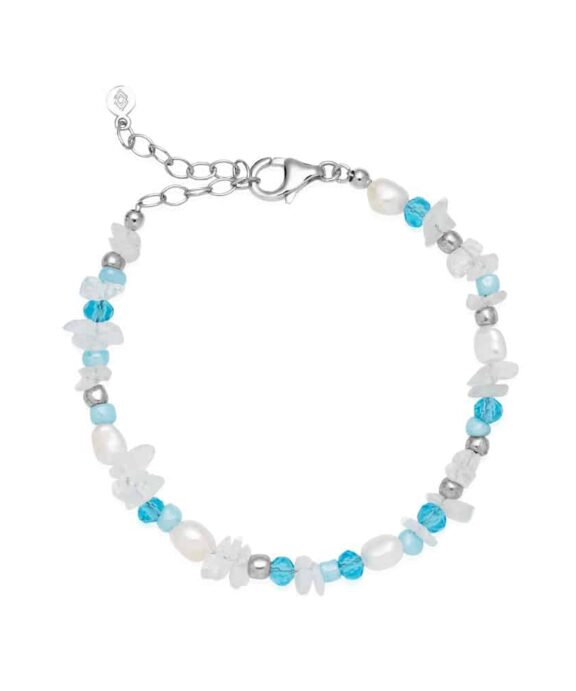IZABEL CAMILLE MIRA SØLV ARMBÅND MIX AF LYSE PERLER OG KRYSTALLER – A3143SWS