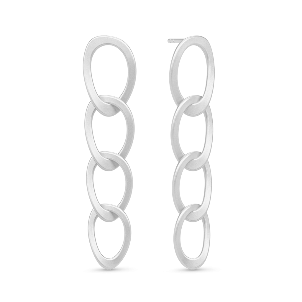 Smukke øreringe i et klassisk organisk design. Øreringene er fremstillet i rhodineret sterlingsølv med Julie Sandlaus karakteristiske statin finish. De lukkes bag på øret med en ørestik og -møtrik. Leddene er sammensat, så de ikke drejer.