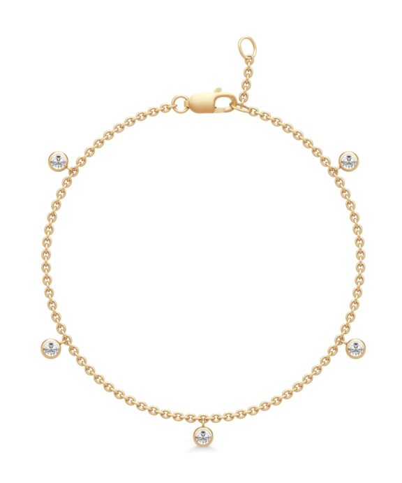 Rundt på armbåndet sidder fem cubiske zirkonia i runde fatninger.