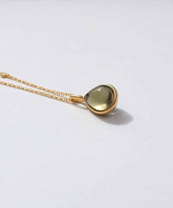 Sølv forgyldt vedhæng med oliven farvet cabochon sleben krystal. Vedhænget er fra serien PALOMA og findes i andre farver. Vedhænget er belagt med en 22 karat forgyldning på 5 mikron.