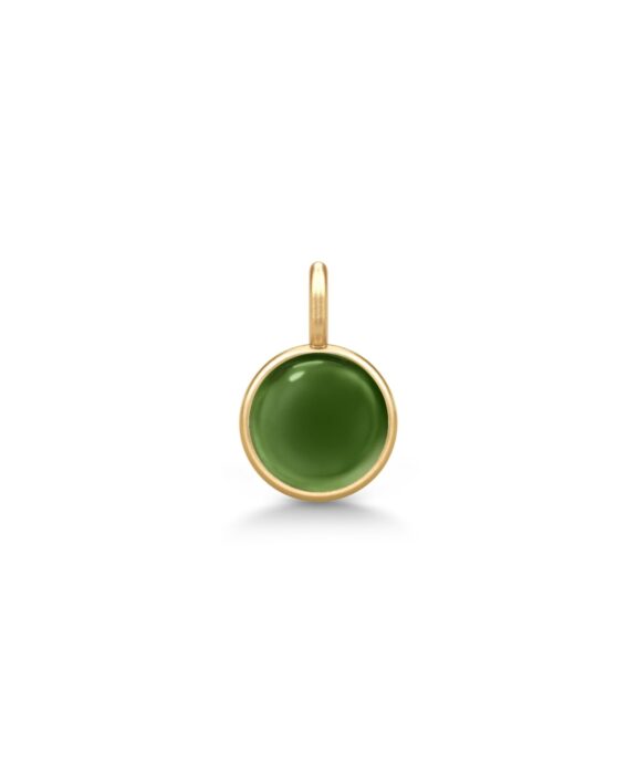 Den klassiske cabochon slibning af vedhængets mosgrønne krystal fremhæver krystalens dybde og farvespil, hvilket giver vedhænget et tidløst og sofistikeret udseende. Kombiner vedhænget med andre vedhæng i en kæde for at skabe et personligt og unikt look.