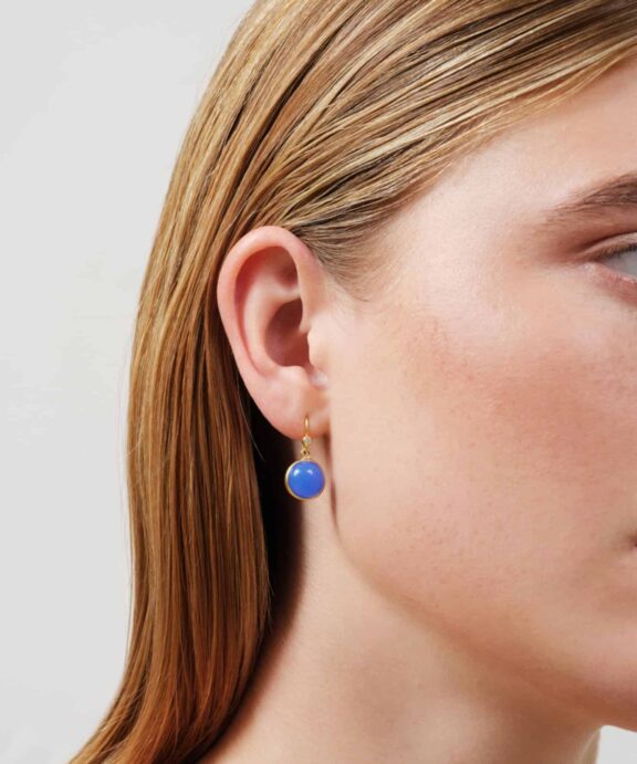 Den blå sten er en royal blue krystal, som er cabochon slebet.