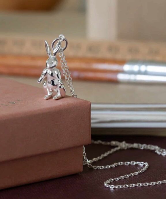 Bær et ikonisk stykke dansk design tæt på hjertet med denne kanin halskæde i sterling sølv fra Kay Bojesen Jewelry. Halskæden er inspireret af Kay Bojesens originale trækanin fra 1957 og forener leg, æstetik og tradition i et elegant smykke.