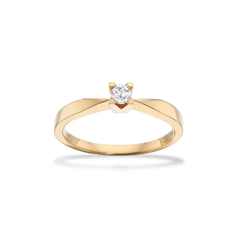 Denne ringe i serien kleopatra er fremstillet i 14 karats rødguld og og med en brillant i kvaliteten 0,10 w/si.