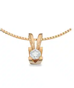 14 karat guld vedhæng med brillant på 0,10 carat i kvaliteten wesselton/si. Vedhænget har tilknyttet en ombytningsret, at man inden for to år kan ombytte vedhænget til nummeret større, ved at betale differencen.