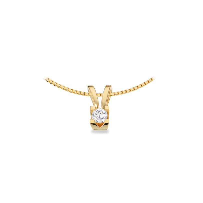 14 karat guld vedhæng med brillant på 0,20 carat i kvaliteten wesselton/si. Vedhænget er med blank oveflade og uden kæde. Til vedhænget er der tilknyttet en ombytningsret, at man inden for to år kan ombytte vedhænget til minimum nummeret større ved at betale differencen.