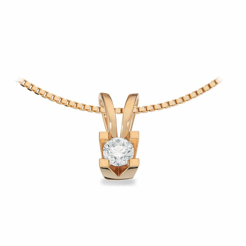 14 karat guld vedhæng med brillant på 0,25 carat i kvaliteten wesselton/si. Brillanten bliver holdt af fire grabber. Vedhænget er uden kæde, men kan tilkøbes.