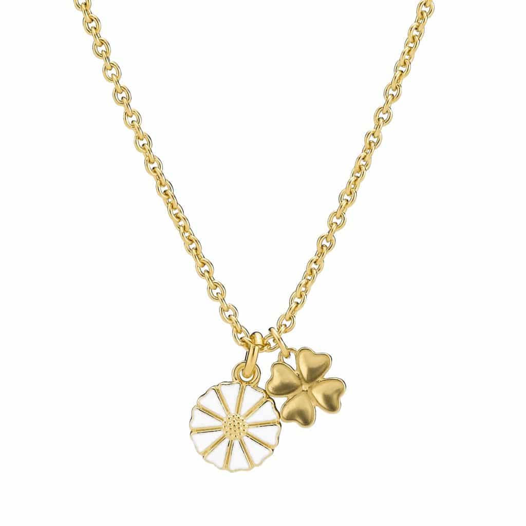 LUND COPENHAGEN HALSKÆDE FORGYLDT SØLV MARGUERIT OG FIRKLØVER – 9025073-M