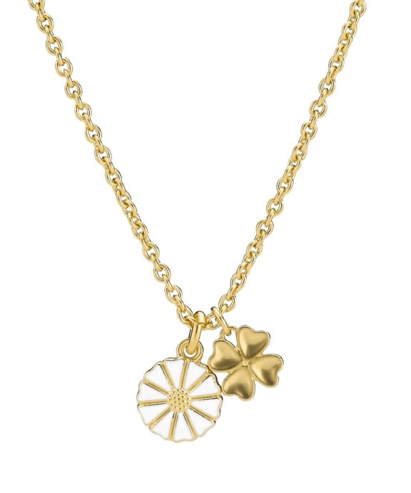 LUND COPENHAGEN HALSKÆDE FORGYLDT SØLV MARGUERIT OG FIRKLØVER – 9025073-M