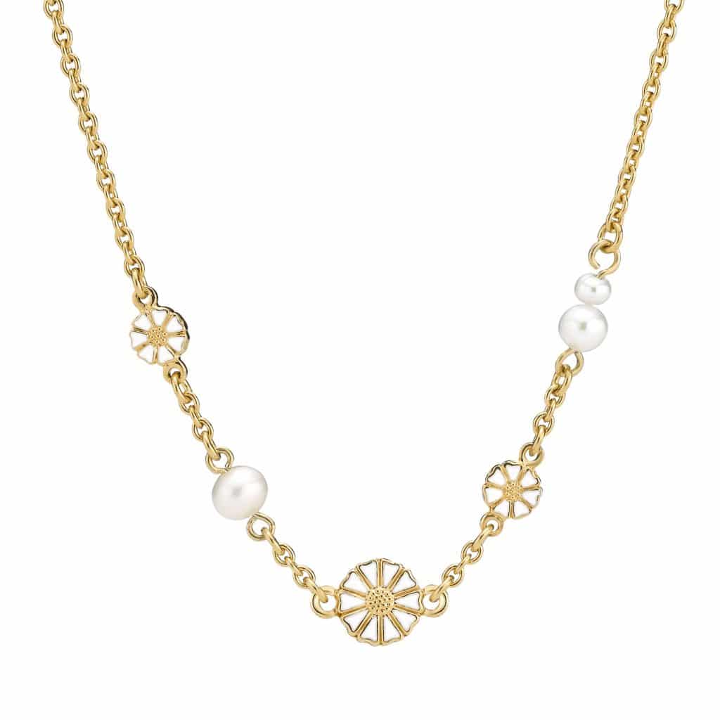 LUND COPENHAGEN HALSKÆDE SØLV FORGYLDT MARGUERIT OG PERLER – 9025074-33-M
