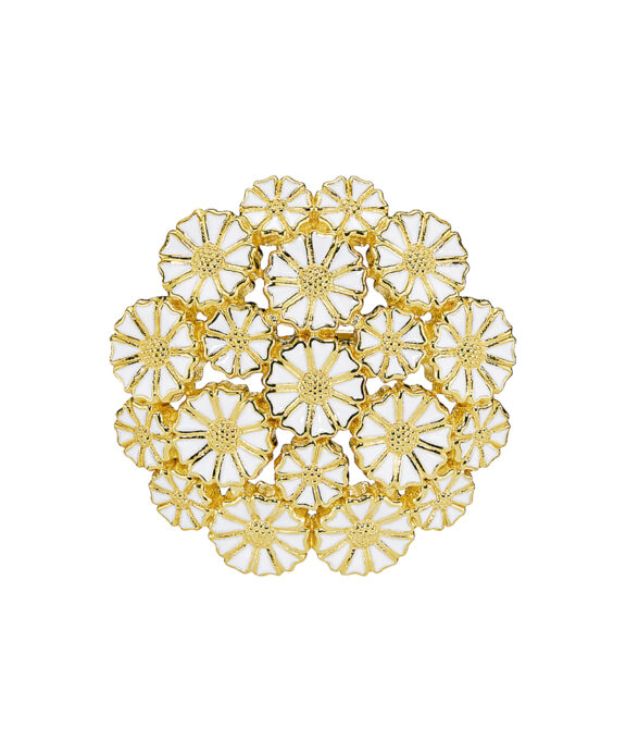 LUND COPENHAGEN MARGUERIT BROCHE SØLV FORGYLDT HVID – 904075-M