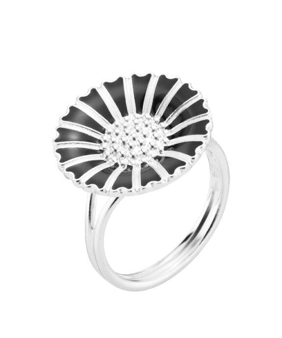 LUND COPENHAGEN MARGUERIT SØLV RING 18 MM MED SORT EMALJE – 907018-S