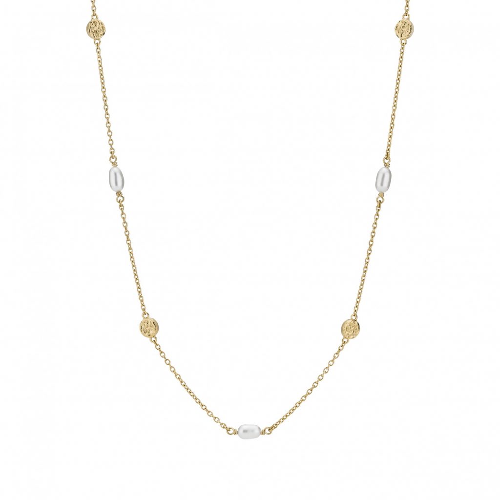 LUND COPENHAGEN SØLV FORGYLDT HALSKÆDE MED RUSTIK PLADE OG PERLER – 9021238-33-F