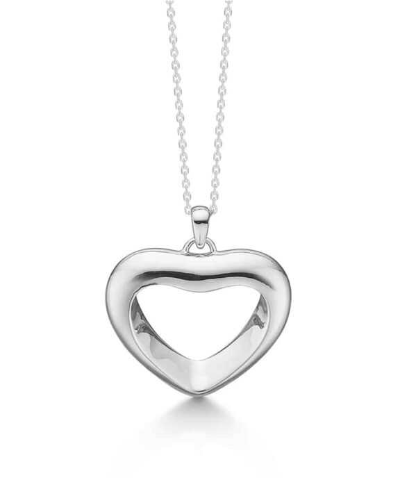Sølv halskæde med hjerte. Halskæden er fra serien AFFEKTION. Det flotte hjerte vedhæng er åben og sidder sølv rhodineret rund anker kæde tråd 0,40 mm og i en længde 45 cm.