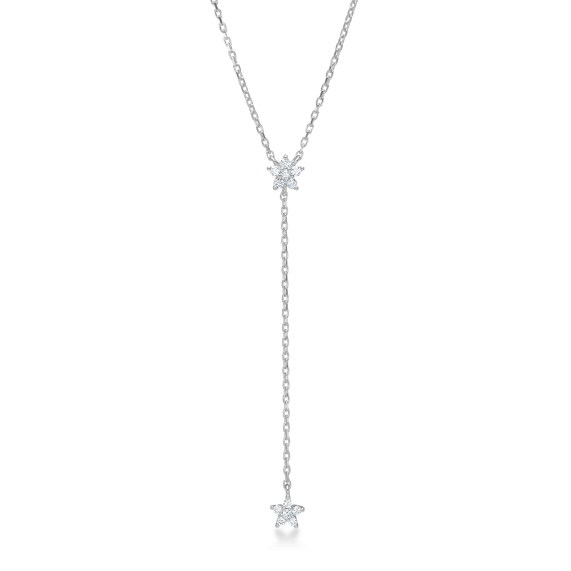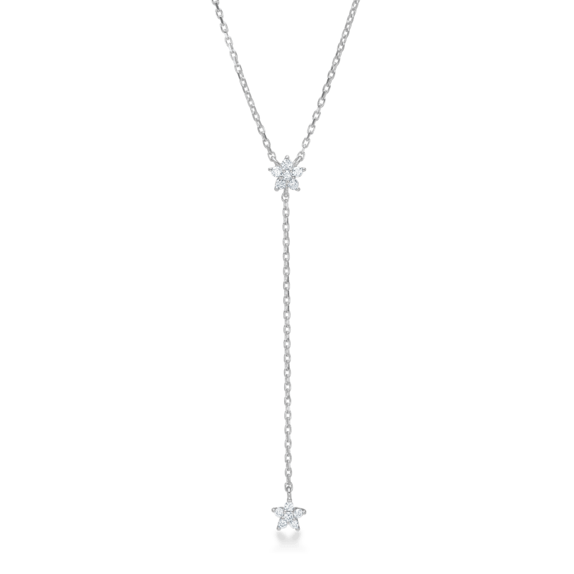 Det raffinerede Y-design falder smukt langs halsen og skaber en slank, feminin silhuet, mens de funklende zirkonia-sten tilfører et diskret, men iøjnefaldende glimt. Den kølige sølvfinish giver et tidløst udtryk, som gør halskæden perfekt både til hverdag og til særlige anledninger.