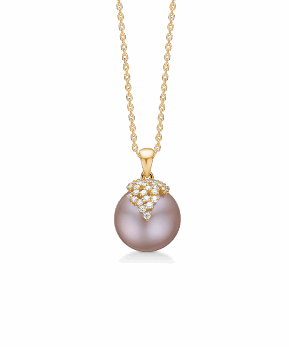MADS Z CHLOE VEDHÆNG I 14 KARAT GULD MED ROSA KULTUR PERLE OG BRILLANTER – 1533025