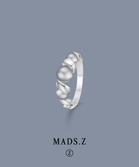 MADS Z SWIRL W. PEARL RING SØLV MED GRÅ PERLER – 2143086