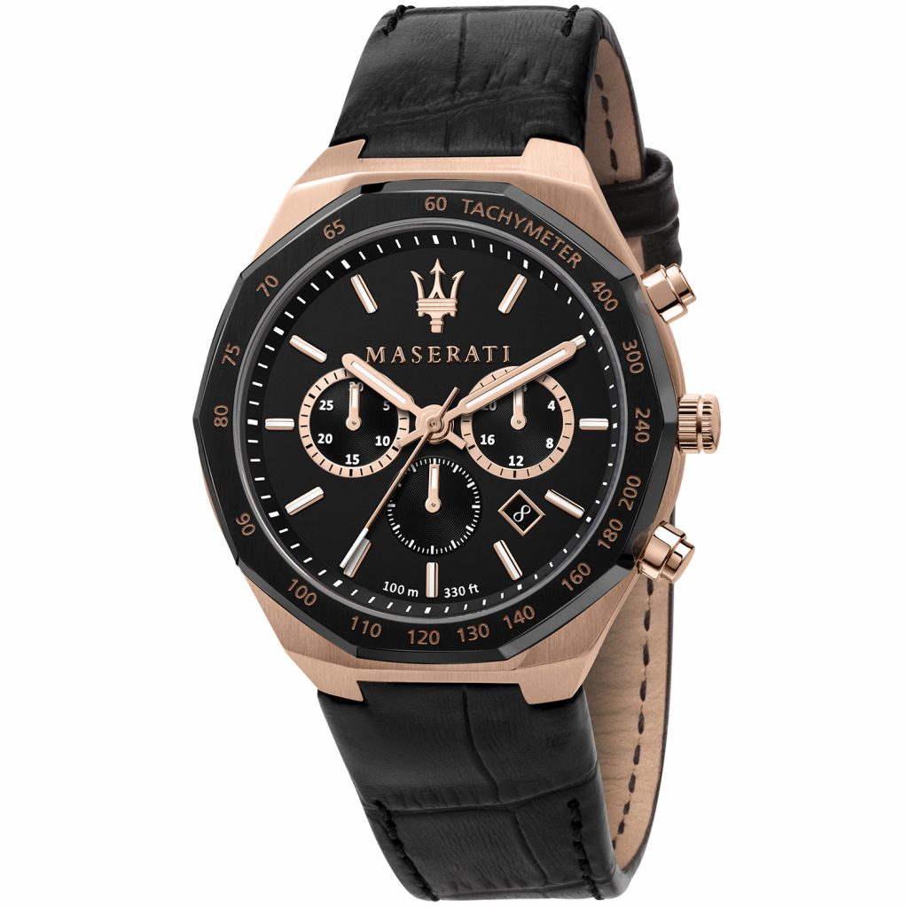 MASERATI STILE ROSE GOLD LÆNKE OG SORT LÆDERREM – R8871642001