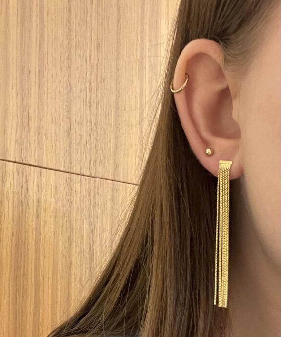 Øreringe i 925 sterling sølv forgyldt, ørestikkerne er designet med mange små kæder.